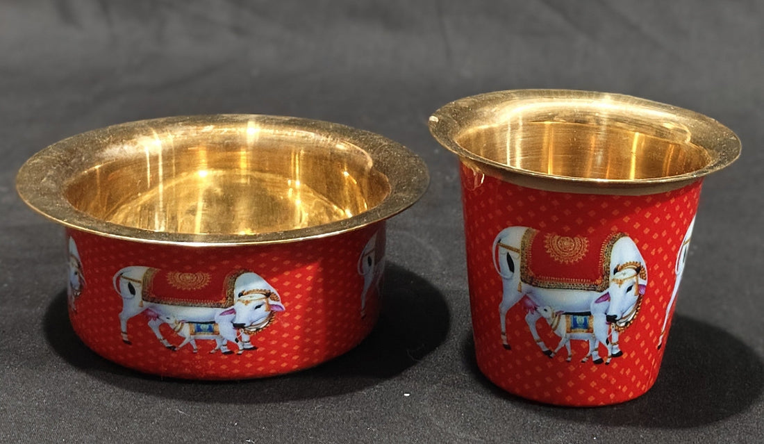 COFFEE / TEA DABRA SET PURE BRASS WITH RED PICHWAI DESIGN