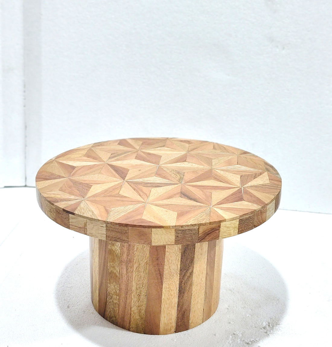WOODEN CAKE STAND WITH WOOD DESIGN 12X7