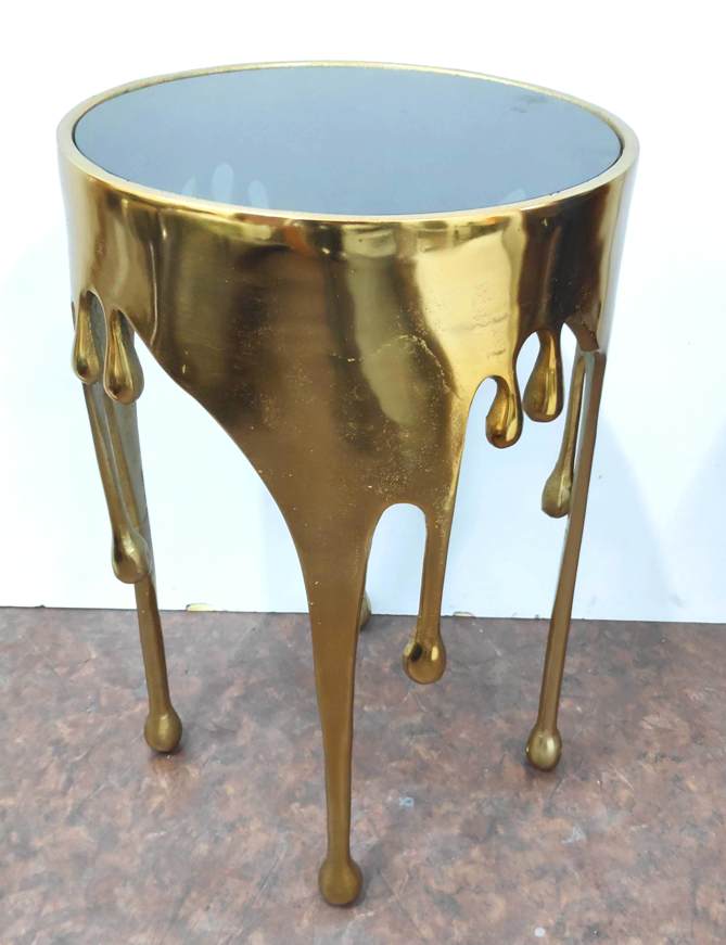 ALUMINIUM DRIP ACCENT TABLE GOLD WITH UNBREAKABLE GLASS