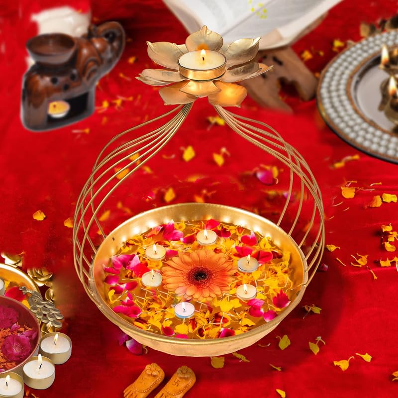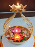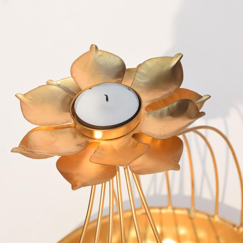 Crafted to resemble a blooming flower nestled within a decorative bowl, this piece radiates charm and warmth. The central floral design holds a clear glass T-light cup, perfect for casting a soft, tranquil glow in your home.
