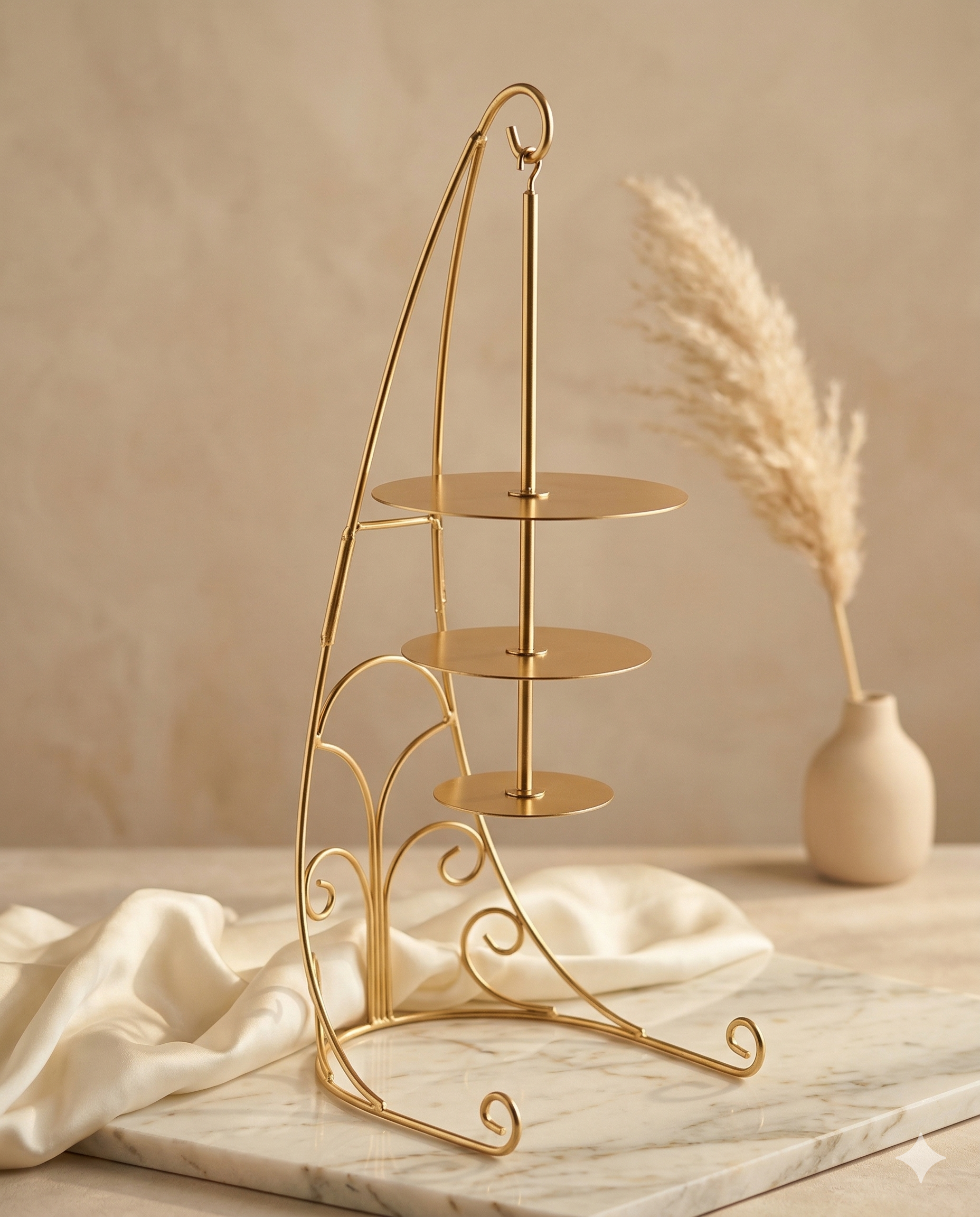 With its graceful silhouette and sturdy build, each tier offers ample space for cakes, cupcakes, and confections while maintaining stability and style.