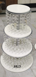 Adorned with sparkling crystal accents and supported by a graceful tiered structure, this stand is designed to make a statement. The soft ivory plates complement the shimmering crystal detailing, creating a perfect blend of sophistication and charm.