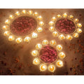 This beautifully handcrafted set features three urli bowls adorned with delicate diya (lamp) motifs, symbolizing light, positivity, and auspiciousness. Perfect for floating diyas, candles, or flowers, these bowls bring a serene and inviting ambiance to your pooja room, festive décor, or special occasions.