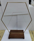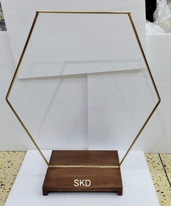 Featuring a large 30" hexagonal hoop framed by a sturdy 16"x16" rectangular wooden base, this stand offers a unique blend of natural elegance and structural beauty. Perfect for displaying cakes, floral arrangements, or decorative items, it adds a warm, artisanal touch to weddings, events, or home décor.