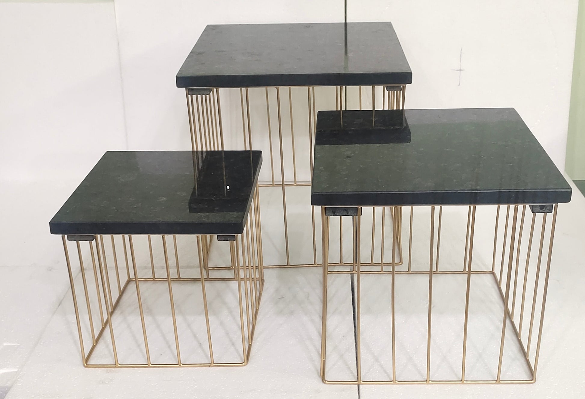 Set of 3 square marble cake stands in varying sizes
