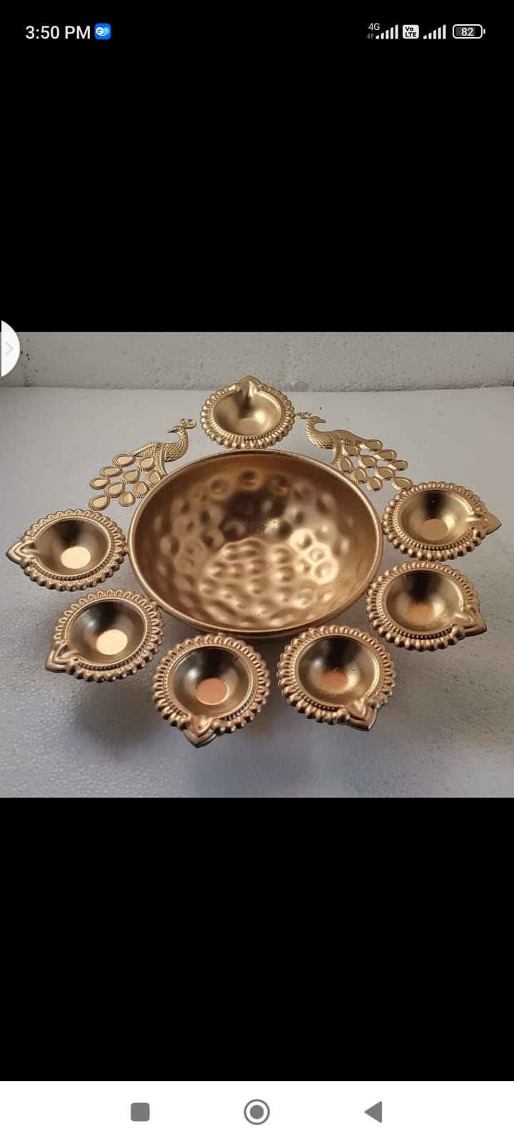 Featuring an intricately sculpted peacock perched along the rim, this stunning urli bowl is a celebration of regal beauty and cultural richness. Perfect for floating flowers, T-lights, or as a standalone decor centerpiece, it adds elegance and charm to any setting—from pooja corners to festive displays.