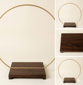Featuring a graceful 23" circular wooden hoop supported by a sturdy 12"x12" rectangular wooden base, this stand beautifully blends rustic warmth with minimalist design. Perfect for showcasing cakes, floral arrangements, or decorative elements, it adds an elegant focal point to weddings, celebrations, or home décor.